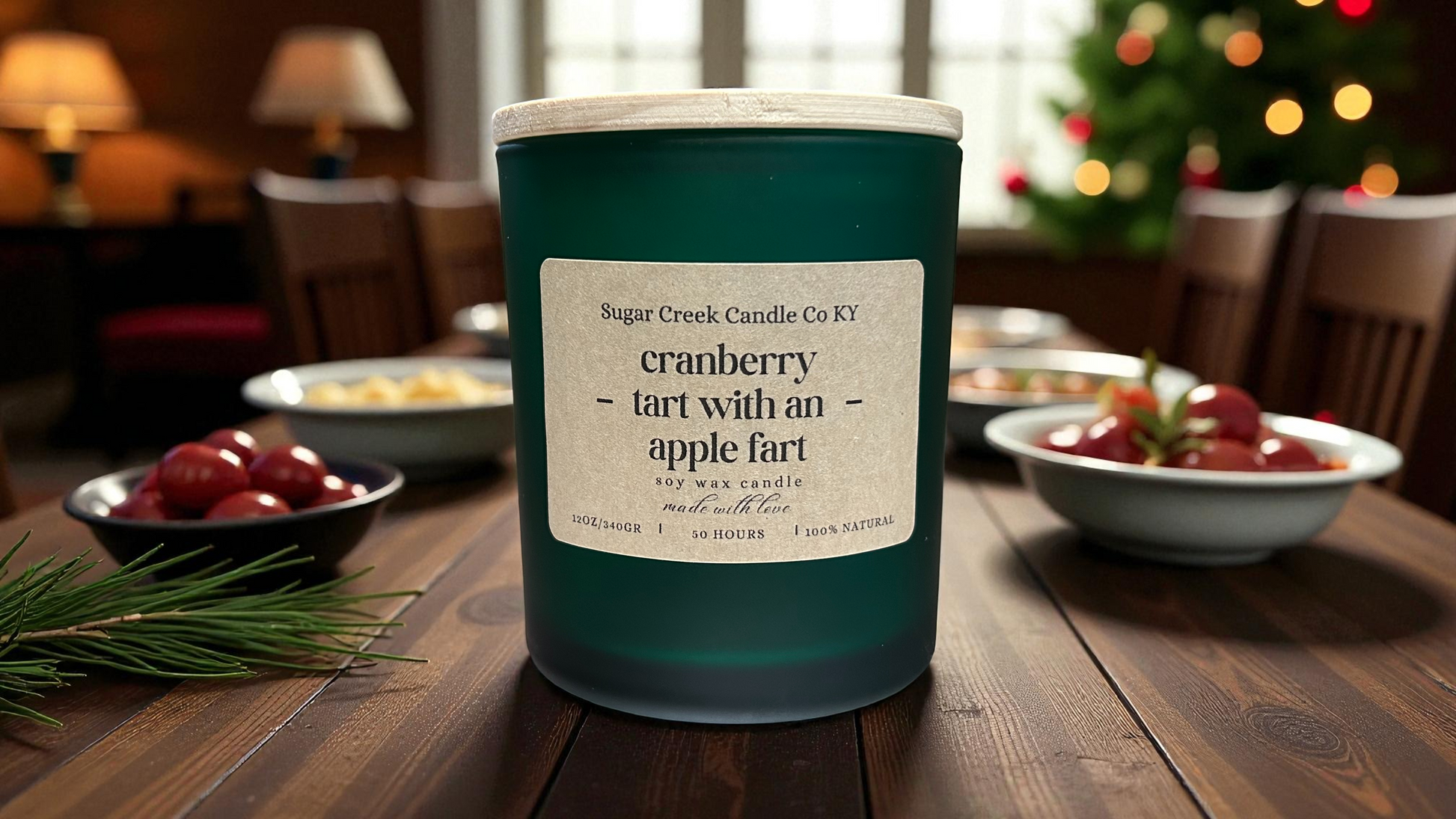 Cranberry tart with an Apple fart - soy wax candle, apple, cranberry, orange peel, sugar, clove and wood